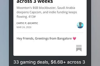 Moonton's $6B blockbuster, Saudi Arabia deepens Capcom, and indie funding keeps flowing. 413#