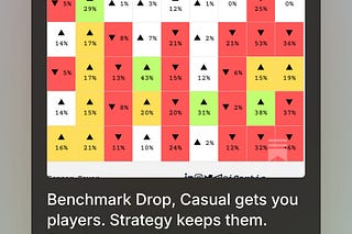 Benchmark Drop, Casual gets you players. Strategy keeps them. Simulation grows them. Shooter monetizes them.