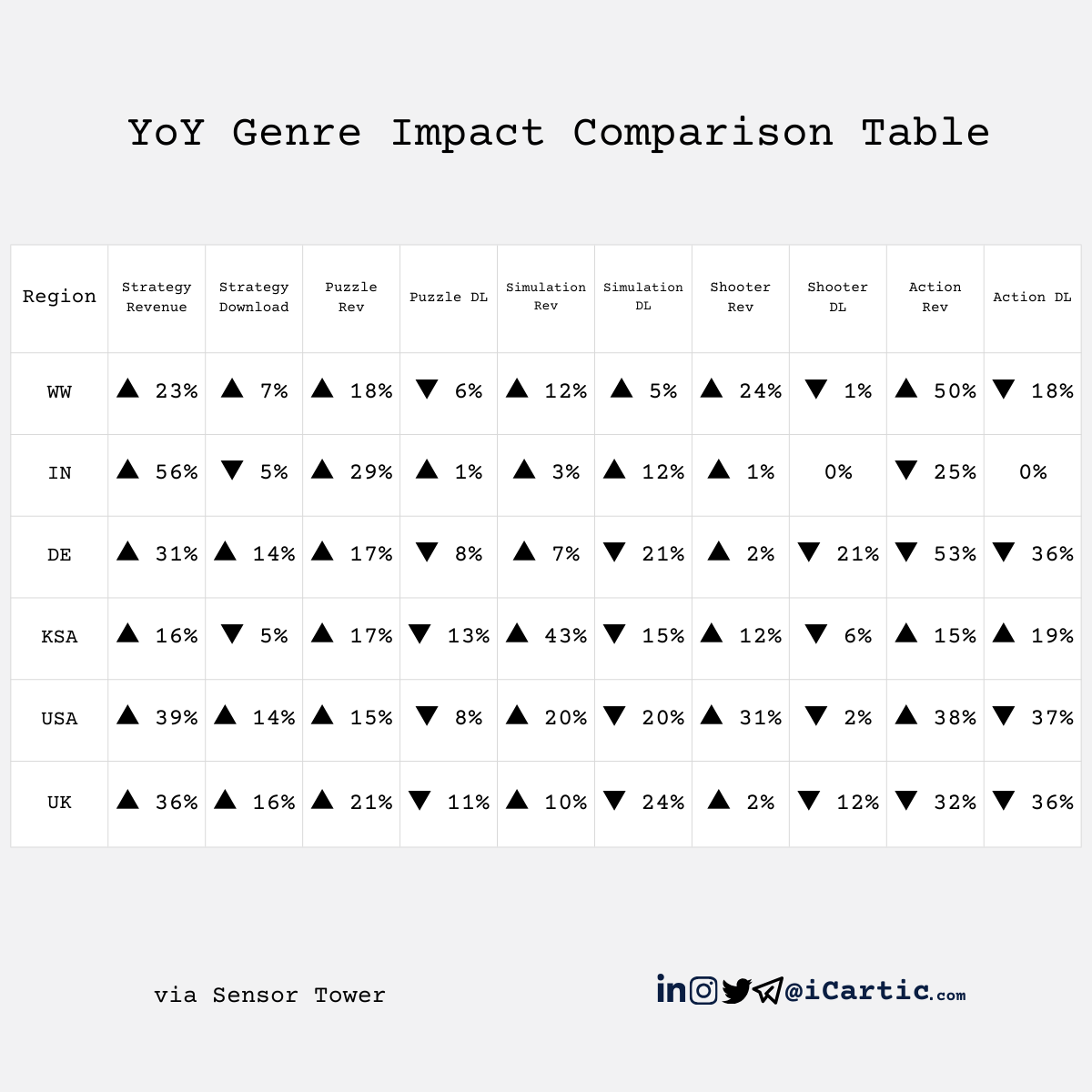 Casual gets you players. Strategy keeps them. Simulation grows them. Shooter monetizes them.