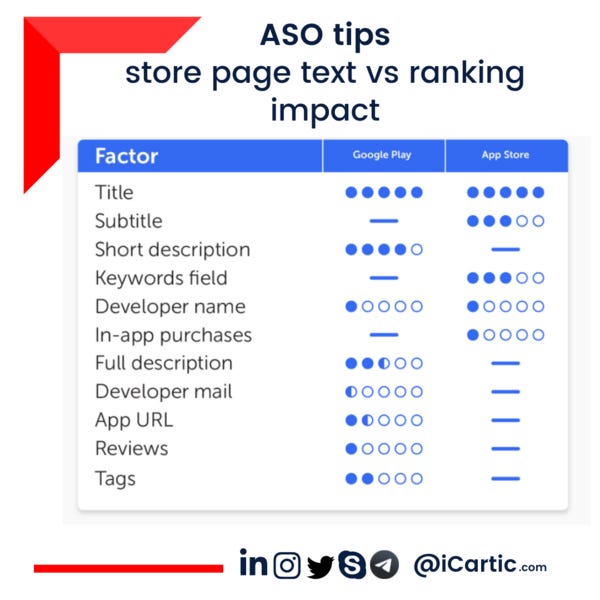 ASO texts used in the store page vs impact on ranking