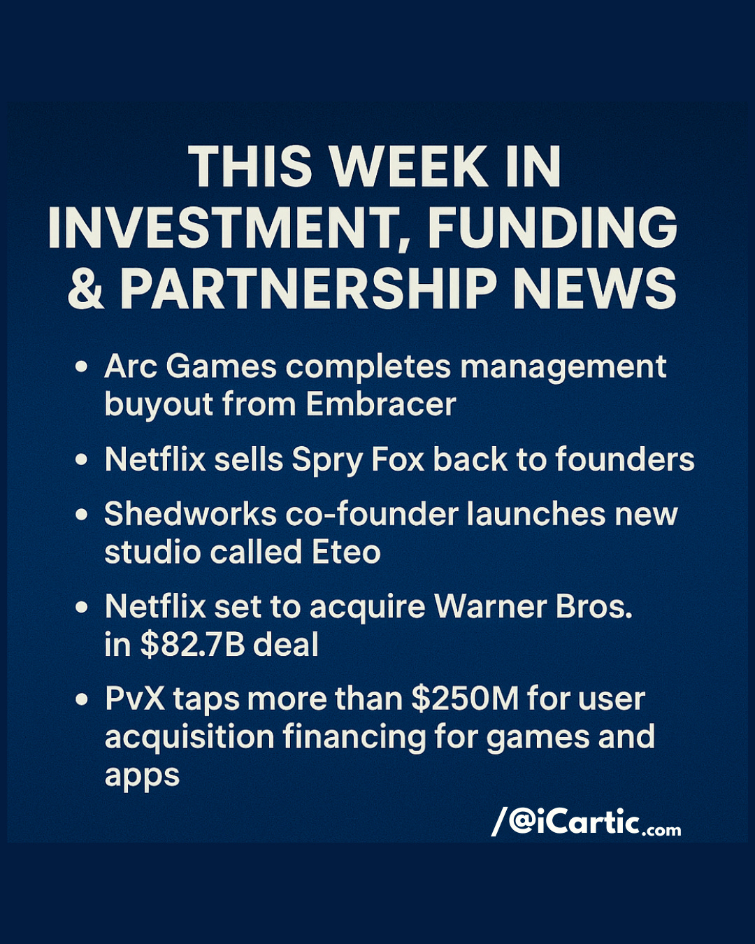 Macro bombshell: Netflix x Warner Bros. Discovery – Netflix agrees an $82.7B deal to acquire Warner Bros. Discovery (pending regulatory approval), potentially bundling HBO, DC, Mortal Kombat, Hogwarts Legacy and more under the same umbrella as Netflix’s games push.