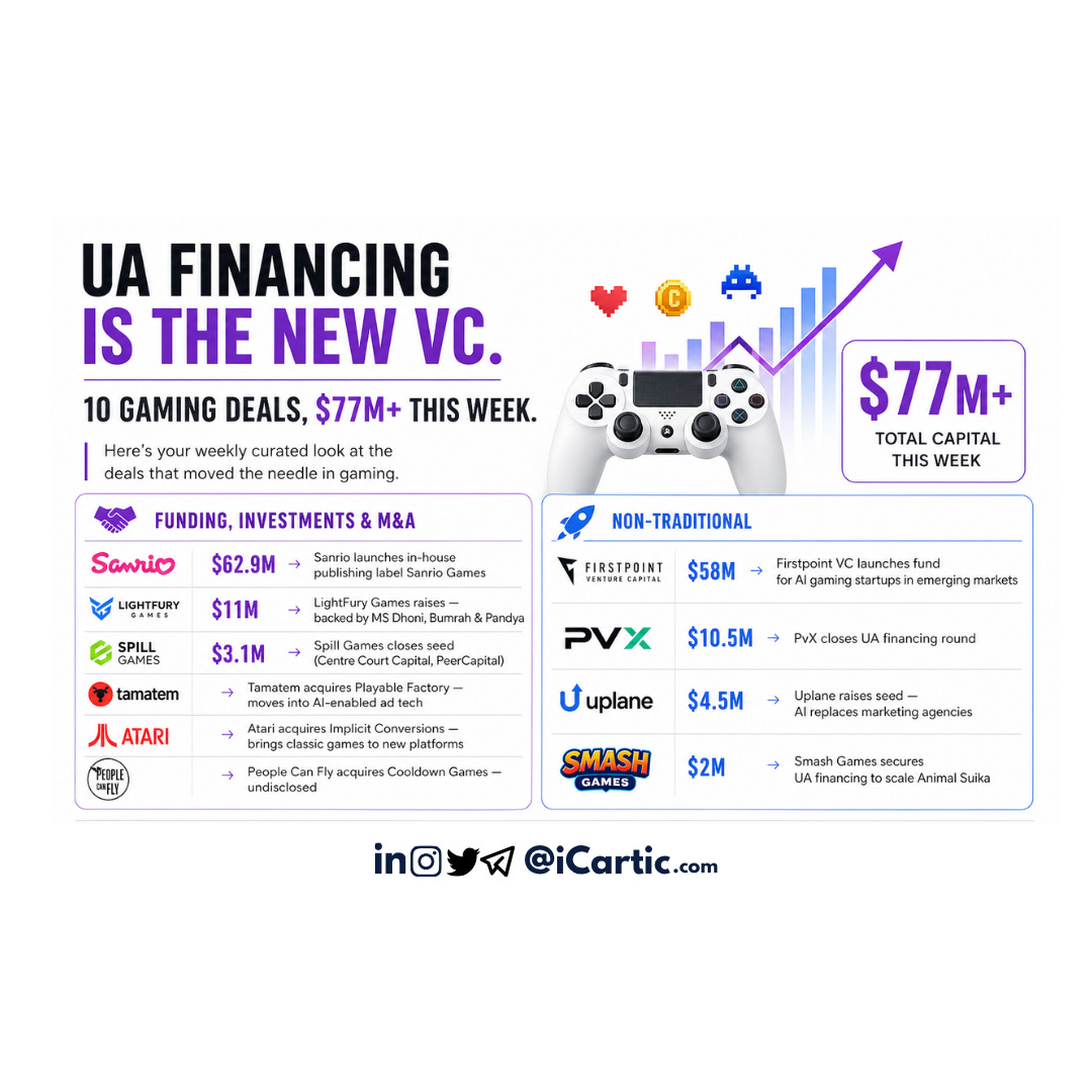 UA financing is the new VC. 10 gaming deals, $77M+ last week