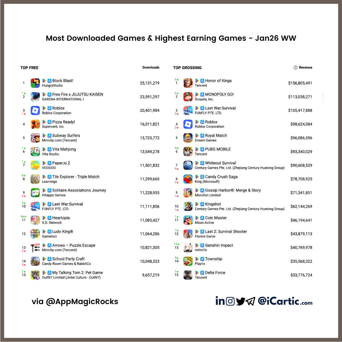 Top Games of Jan 2026– Downloads vs. Revenue, 401# :)